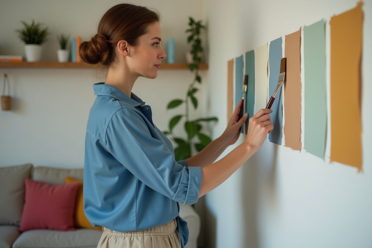 - Appliquez plusieurs échantillons sur différents murs et à des hauteurs variées : cela permet d’observer comment la couleur évolue selon l’orientation et la lumière.
